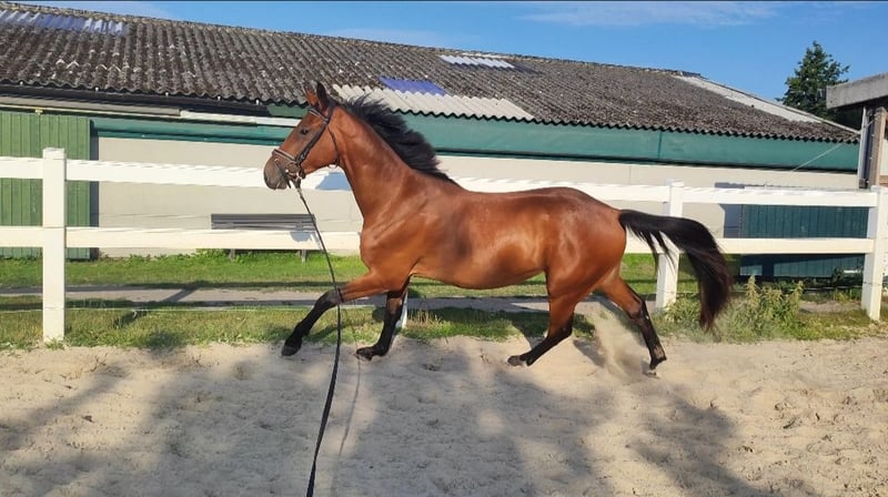 Chico vereint bestes Spingblut! Charakterlich präsentiert Chico sich unheimlich cool und intelligent. Er ist sehr selbstbewusst, einfach im Handling, lieb und menschenbezogen. Der Vater Coeur de Bella Donnas (geb. 2018) avancierte zum gefeierten Siegerhengst der Westfälischen Körung. Eine Gänsehaut und pure Begeisterung entfachte er bei seinen Auftritten im Freispringen. Mit einer überragenden Elastizität, maximalem Vermögen und einer brillanten Technik ausgestattet, meistert Coeur de Bella Donna auch höchste Abmessungen mühelos. Besonders beeindruckend ist seine naturgegebene Übersicht und Intelligenz am Sprung, welche bei der neuen Kördisziplin der Westfälischen Körung, dem Freispringen mit nur einem Sprung, besonders deutlich wurde. Zuchtleiter Thomas Münch fasste abschließend zusammen: „Ein Sportler vom Scheitel bis zur Sohle mit Springeindrücken erster Güte. Wir geraten ins Schwärmen.“ Die Mutter vereint ebenfalls Springblut mit einer Abstammung von Pontifex, Polydor, Acord II und Argentinus und war selbst erfolgreich im Sport. Mit Calle vom Kiez wurde bereits ein Halbbruder von Chico sehr erfolgreich als Spitzenpferd der Youngster Auktion der 3 Jährigen vermarktet. PS: Video auf Anfrage per Whatsapp