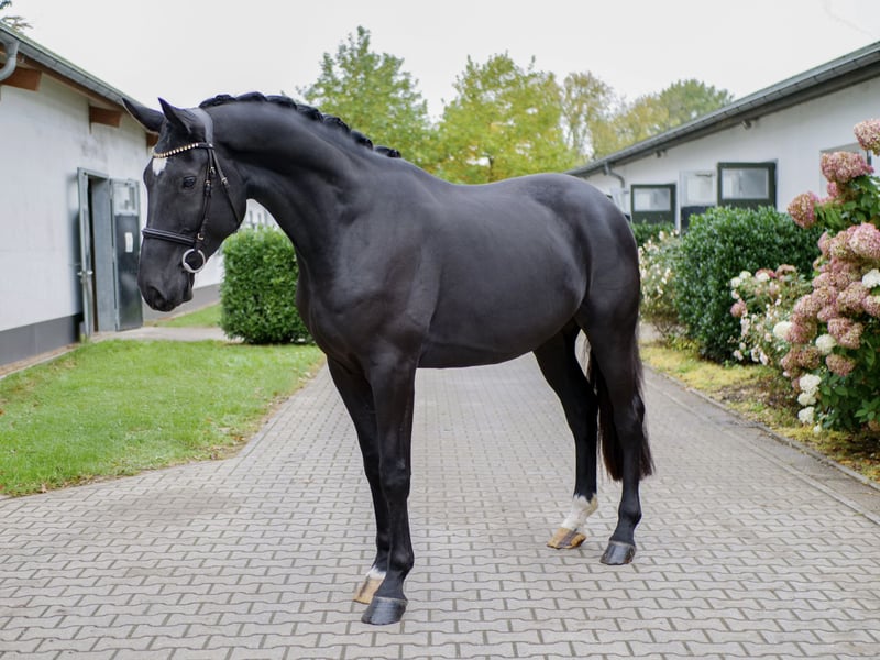 Here is a well-behaved, handsome, and relaxed Westphalian gelding – an impressive black stallion with great potential for dressage. This elegant Westphalian gelding, born in 2021, impresses with his striking appearance and friendly nature. Standing at 17.5 hands, he is perfect for ambitious riders who value quality and elegance. The gelding is ideally suited for dressage and already shows considerable talent in training. His balanced temperament and willingness to learn make him a reliable partner for the demanding rider. He has been gently started and is familiar with the farrier, machinery, and loading! X-rays from 2024 are available and can be sent upon request. He is very comfortable to sit, making riding lessons and basic gaits enjoyable. If interested, we are happy to provide further information and arrange a viewing. Contact us to learn more about this promising, elegant horse!