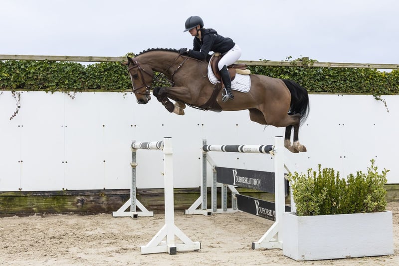 Harbinger Blue is een paard met een droomafstamming en dat zie je direct terug in zijn manier van springen en bewegen. Een compleet paard qua model, dat goed in elkaar zit en zowel op de sprong als in de rijdbaarheid kwaliteit laat zien. Hij is nog maar kort onder het zadel, maar toont nu al veel lichtvoetigheid, balans en een natuurlijke manier van bewegen. Op de sprong valt hij op door zijn snelle afzet, zijn overzicht en zijn goede techniek. Hij springt met veel manier en laat zien dat hij het werk makkelijk oppakt. Een paard met bloed, kwaliteit en een natuurlijke aanleg om te springen. Hij heeft een natuurlijke motor waarbij het achterbeen goed onder het lichaam komt, wat hem prettig maakt in het rijden en bijdraagt aan zijn balans en rijdbaarheid. Een zeer interessant paard voor de toekomst. Vader Hickstead Blue springt op 1.40m niveau en is een zoon van Hickstead White (1.60m), uit de bekende lijn van Hickstead. Moeder Alya-Catokia is een dochter van Catoki (1.60m) en gaat terug op de sterke Holsteiner lijn van Caretino en Landgraf I. De moederlijn is uitzonderlijk sterk en brengt meerdere paarden op topniveau: Quintana Roo 2 (1.60m) Verdi TN (1.60m–1.70m) Holy Key (1.50m) Chrysler Key SR (1.50m) Cafe de Paris (1.45m) Supertramp SR Z (1.45m) Natkingkey SR (1.35m) meerdere paarden op 1.30m–1.60m niveau Een stam met bewezen prestaties tot op het hoogste niveau.