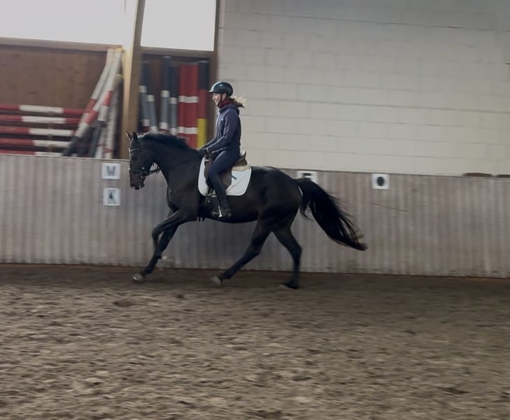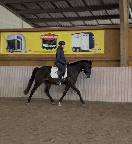 Ultra is a gelding to fall in love with. Affectionate, curious, light-footed, and motivated, he always shows his best side. His brother from the same mother is currently successful in M-level show jumping. He is an intelligent horse that loves to be cuddled and spoiled. He enjoys walks, petting, and likes children. When riding, he is light-footed and calm. He is easy to ride through the neck. He is currently making his first jumps under saddle. He has already placed highly in various competitions in rider classes and is familiar with both outdoor and indoor tournaments. He can be tried out for riding. Like all offspring of United Way, he is tough and eager to perform. Trade possible!!