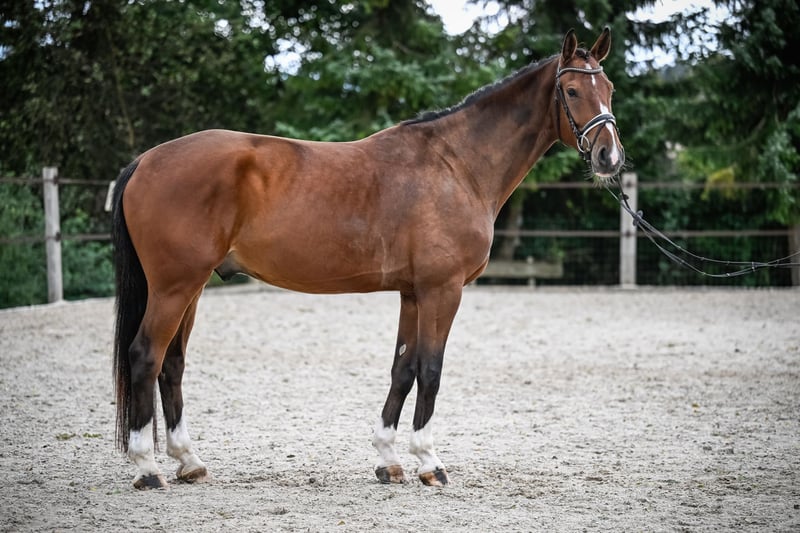 Shantaram RAK, bred by me, is truly an "All-in-One" horse. He is affectionate, enjoys trail riding, is easy to load, and carries his hooves with elegance. He also displays grace in the dressage arena, where he performs his dressage exercises calmly and with energy, executing all three basic gaits evenly. Always eager for more. He fully demonstrates his power and jumping ability both on the cross-country course and in field training. Shanti spent over a year in training with Wally Gegenschatz (www.gegenschatzhorsemanship.com), where he learned all the social skills necessary for respectful handling of humans and his environment. Currently, he is being refined in riding skills by Patrick Rüegg (www.pr-equestrian.ch), ensuring he is in the best hands for his ongoing education. Shanti comes from my own breeding program (RAK Horses), based in Germany. Originally, I brought Shanti to Switzerland for myself, but I realized that I simply do not have the time for a third horse. Shantaram RAK is looking forward to a new home where he can fully express his versatile talents.