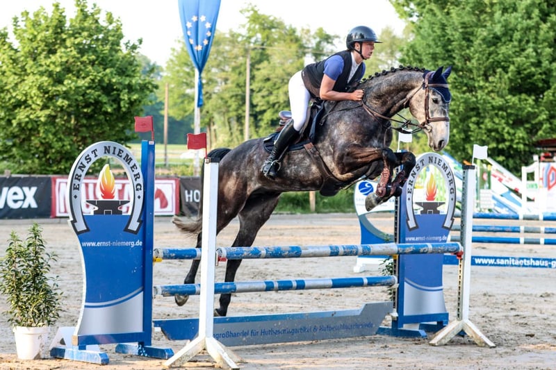 Im Umgang und auch im Kontakt mit anderen Pferden zeigt er sich sehr entspannt und genießt Zuwendung. Er ist brav beim Hufsschmied und geht ohne Probleme auf den Hänger oder Transporter. Ausritte mag er gerne. Er hat diverse Turniererfahrungen und konnte sich mit einer erfahrenen Amazone schnell im Bereich A ** und L Springpferdeprüfungen vorne platzieren. Im Parcour zeigt er sehr viel Ehrgeiz und möchte keine Fehler machen. Er hat eine tolle Springmanier, ist dabei jedoch sehr Temperamentvoll! Aufgrund seiner wertvollen Abstammung ist er sicherlich mit grenzenlosen Vermögen ausgestattet, die Rittigkeit müsste weiterhin gefördert werden. Ich sehe ihn als ein starkes Pferd für einen fortgeschrittenen Amateur oder Profi mit Ambitionen für den großen Sport. Dieses Pferd benötigt in der weiteren Ausbildung jedoch eine gewisse Sensilibilität bei der Weiteren Ausbildung. Kerngesund, x-rails zuletzt ohne Befund Wird nur aus privaten Gründen in nachweislich beste Hände verkauft! Bei Fragen melden Sie sich bitte jederzeit! Für eine Probereiten bitten wir entsprechende Qualifikationen nachzuweisen und 30 zu entrichten, um das junge Pferd nicht unnötig durch einen Reittourismus zu belasten !