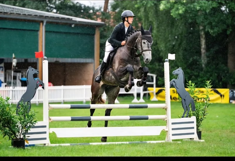 Im Umgang und auch im Kontakt mit anderen Pferden zeigt er sich sehr entspannt und genießt Zuwendung. Er ist brav beim Hufschmied und geht ohne Probleme auf den Hänger oder Transporter. Ausritte mag er gerne. Er hat diverse Turniererfahrungen und konnte sich mit einer erfahrenen Amazone schnell im Bereich A- und L-Springpferdeprüfungen vorne platzieren. Im Parcours zeigt er sehr viel Ehrgeiz und möchte keine Fehler machen. Er hat eine tolle Springmanier, ist dabei jedoch sehr temperamentvoll! Aufgrund seiner wertvollen Abstammung ist er sicherlich mit grenzenlosem Vermögen ausgestattet, die Rittigkeit müsste weiterhin gefördert werden. Ich sehe ihn als ein starkes Pferd für einen fortgeschrittenen Amateur oder Profi mit Ambitionen für den großen Sport. Dieses Pferd benötigt in der weiteren Ausbildung jedoch eine gewisse Sensibilität. Kerngesund, x-rails zuletzt ohne Befund. Wird nur aus privaten Gründen in nachweislich beste Hände verkauft! Bei Fragen melden Sie sich bitte jederzeit! Für eine Probereiten bitten wir, entsprechende Qualifikationen nachzuweisen und 30 zu entrichten, um das junge Pferd nicht unnötig durch einen Reittourismus zu belasten!