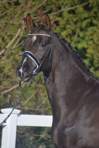 LUXUS AUF VIER HUFEN - WO PERFORMANCE UND HERZSCHLAG EINS WERDEN BEWEGUNGSSTARK - EIN HERZ AUS GOLD - WUNDERSCHÖN - Junioren geeignet! Zum Verkauf steht in Vertretung des Besitzers, dieser 177 cm große, 5-jährige westfälische Dunkelfuchs Wallach, mit erfolgversprechender Abstammung von BONDS x FÜRST HEINRICH. Er befindet sich, seit Beginn seiner Ausbildung, in professionellem Vollberitt und ist auf Dressurpferde L Niveau. Es gibt Pferde, die ziehen einen in Ihren Bann, noch bevor sie den ersten Tritt getan haben. "BUGATTI" ist ein solcher Ausnahmetyp. Er ist nicht nur optisch, in seinem glänzendem Dunkelfuchs-Gewandt und mit seinem hervorragenden Gebäude eine Erscheinung, die an die Eleganz und Perfektion seines Namensgebers erinnert – er ist ein Kraftpaket mit einem Herz aus Gold und vorzüglicher Rittigkeit. Eine Empfehlung für den ambitionierten Dressurreiter, der das Besondere sucht. EIN CHARAKTER DER KEINE WÜNSCHE OFFEN LÄSST "BUGATTI´s" ist ein wahrer Gentleman und im Umgang ein echter Kuschelbär, der die Nähe, zum Menschen liebt und am liebsten stundenlang in seiner Box schmust. Zudem zeichnet ihn seine unerschrockene Art aus. Wo andere Pferde seines alters zögern, bleibt er gelassen. Ob neue Umgebung oder unbekannte Geräusche, er verfügt über ein souveränes Nervenkostüm, was ihn zum perfekten Partner für das Dressurviereck und den täglichen Genuss am Reiten macht. BEWEGUNGSQUALITÄT DER EXTRAKLASSE unter dem Sattel zeigt Bugatti, warum er seinen Namen zu Recht trägt. Mit beeindruckender Konzentration und Rittigkeit marschiert er mit enormen Grundgangarten durchs Viereck und ist dabei äußerst Sitz bequem. Der Trab getragen von der aktiven, Abdrucks starken Hinterhand mit viel Schub, Schulterfreiheit und einer Mechanik die ihresgleichen sucht. Der Galopp enorm im Bergauf herausgebracht, bei Raumgriff und stets im Gleichgewicht. Hier fühlt man sich auf Wolken. Der Schritt, sicher geregelt, mit viel Übertritt und Vortritt bei innerer Gelassenheit und sicher durch den ganzen Körper schreitend. "BUGATTI" ist ein Spaßmobil und ein echtes Ausnahmepferd. Er ist eine Investition in die Zukunft, ein Sportler mit unbegrenzten Möglichkeiten und ein bester Freund, der mit seinem Reiter durch dick und dünn geht. Wer ein Nachwuchspferd mit maximaler Bewegungsstärke und einem unbezahlbaren Charakter sucht, wird in diesem Dunkelfuchs sein Herzenspferd finden. AUFSTEIGEN, LOS REITEN UND DIE FASZINATION BUGATTI SELBST ERLEBEN... "BUGATTI" könnte nach dem Kauf auch sehr gerne bei uns in professionellem Beritt verbleiben und gerne von uns auf Turnieren vorgestellt werden. Hier sehen wir auch genug Qualität für den internationalen Sport. Ein guter aktueller klinischer und röntgenologischer (Standard + Rücken + Hals) TÜV liegt vor!