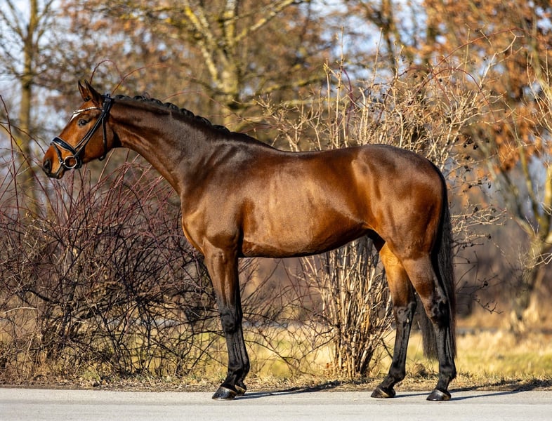 Feiner Heinrich ist ein äußerst ansprechender, dunkelbrauner sechsjähriger Wallach mit bewährter Abstammung von Follow Me aus einer Sir Donnerhall-Mutterlinie. Ein modernes Nachwuchspferd mit Qualität, Rittigkeit und klarer Perspektive. Er überzeugt nicht nur durch seine elegante Erscheinung und sehr gute Bewegungsqualität, sondern vor allem durch seine ausgeprägte Rittigkeit und Zuverlässigkeit. Feiner Heinrich ist angenehm im Handling, klar im Kopf und vermittelt jederzeit ein sicheres Reitgefühl. Turniererfahrung bringt er bereits umfassend mit: Er wurde auf zahlreichen Jugendturnieren in Slowenien erfolgreich vorgestellt. Bei den nationalen slowenischen Meisterschaften der jungen Pferde erreichte er in einer Dressurprüfung der Klasse L landesweit den zweiten Platz. Zudem konnte er in Dressurprüfungen der Klassen E und A mehrfach platziert und siegreich überzeugen. Er ist absolut händelbar und eignet sich durch seine Übersicht und Nervenstärke nicht nur für ambitionierte Nachwuchsreiter, sondern ebenso für Amateure, Junioren, Kinder oder Wiedereinsteiger. Seine unkomplizierte Art macht ihn zu einem echten Ausbildungspartner mit Qualität. Feiner Heinrich ist selbstverständlich verlade- und transporterfahren. Er kennt regelmäßige Ausritte und zeigt sich dabei ebenso zuverlässig wie im täglichen Training. Auch kleinere Sprünge absolviert er problemlos und gelassen. Ein ausgesprochen praktikabler, ehrlicher und bereits sporterprobter Wallach, der trotz seines jungen Alters über viel Sicherheit und Routine in unterschiedlichen Situationen verfügt. Ein ideales Nachwuchspferd für Reiter, die Qualität mit Verlässlichkeit verbinden möchten. Standort Rosenheim!