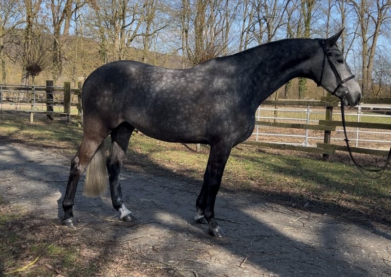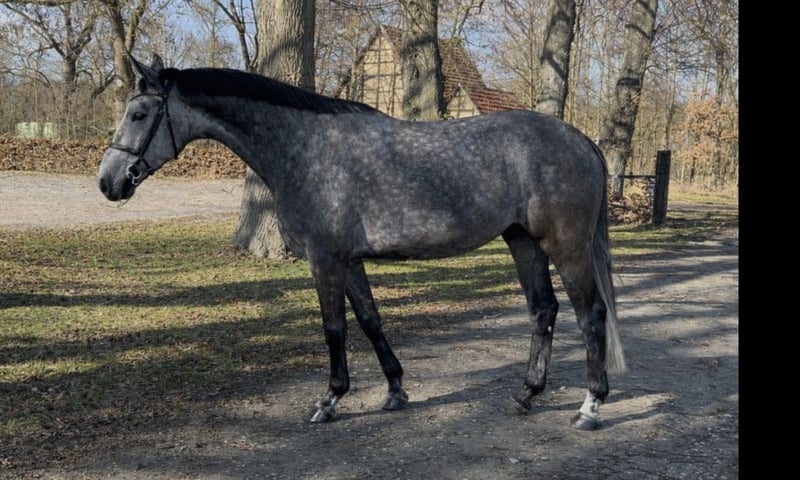 Direkt vom Züchter sucht dieser talentierte, fein zu reitende Wallach ein neues Zuhause. Er ist absolut charakterfest, in jeder Situation eine feste Bank und immer gewillt, für seinen Reiter alles richtig zu machen. Im Umgang und unter dem Reiter eine Lebensversicherung, kann man mit ihm auch ohne Probleme allein ins Gelände reiten. Da er erst spät im Jahr geboren wurde, hat er vierjährig den Sommer noch komplett auf der Weide verbracht und ist erst seit Winter 2024/2025 in Arbeit. Auf drei Turnieren, die er in 2025 bestritten hat, konnte er sich viermal platzieren. Ein super Partner zum weiter ausbilden und Spaß haben.