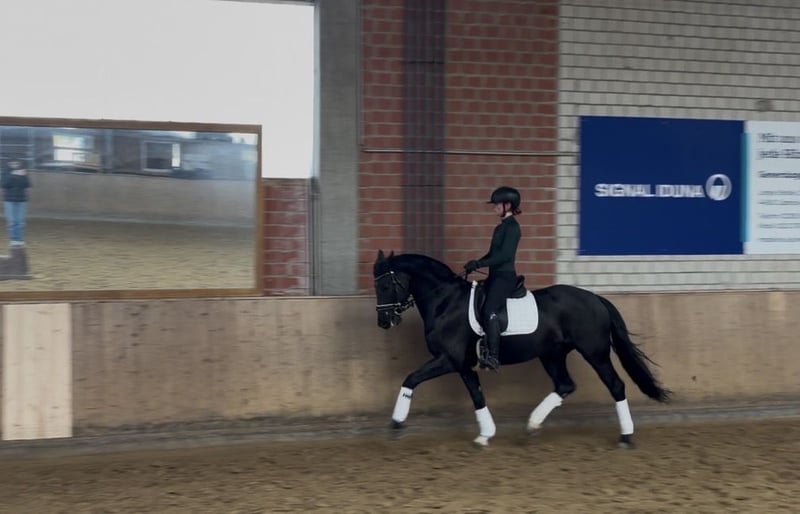 Zum Verkauf steht ein vielversprechender 6-jähriger Westfalenwallach von Escamillo x Riccio, ausgestattet mit sehr guten Grundgangarten und großer Perspektive für den Dressursport. Er überzeugt durch seine Rittigkeit, Lernbereitschaft und sein Talent für das große Viereck. Bereits 2025 wurde er erfolgreich mit einer Amateurin im A-Bereich platziert. Inzwischen beherrscht er die Lektionen der Klasse L. Emiliano präsentiert sich als absolutes Verlasspferd: stets brav, ehrlich und zuverlässig, ohne jegliche Unarten und auch von Kindern zu reiten. Fliegende Wechsel wurden spielerisch begonnen. Darüber hinaus zeigt er sich unkompliziert in jeder Hinsicht: Er springt brav kleinere Hindernisse unter dem Sattel, geht sowohl allein als auch in der Gruppe gelassen ins Gelände und ist problemlos beim Hufschmied, Verladen und Tierarzt. Der Wallach erfreut sich bester Gesundheit, ist regelmäßig geimpft und entwurmt, die Zähne wurden turnusgemäß kontrolliert. Wir wünschen uns für dieses besondere Pferd ein liebevolles, förderndes Zuhause, in dem er sportlich weiter ausgebildet wird und die Aufmerksamkeit erhält, die er verdient. Für weitere Informationen oder ein persönliches Kennenlernen rufen Sie uns gerne an 01702425658 ☺️