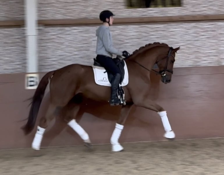 Dear Interested Parties, To schedule a test ride, please send me a WhatsApp message. For further questions, I am available during the day via WhatsApp, and you can reach me best by phone between 4 p.m. and 7 p.m. I look forward to hearing from you. www.angelina-devittorio.de ⭐️Best Friend⭐️ Age: 6 years (2019) Height: approximately 16.1 hh Pedigree: Baron x Florenciano Training Level: Dressage Horse Level A Health Certificate (AKU): Good X-ray images available Beautiful 6-year-old dressage prospect – grandchild of Benicio For sale is a highly talented six-year-old gelding of excellent pedigree (grandchild of Benicio) with three outstanding basic gaits. He impresses with his expression, quality, and great potential for advanced dressage. This horse is a candidate for dressage at the highest levels. In handling, he is an absolute sweetheart – very people-oriented, friendly, and easy to handle daily. Under saddle, he is sensitive and sometimes a bit headstrong, so he requires an experienced and assertive rider, as he occasionally tests boundaries. He is never mean, but not suitable for timid, inexperienced, or insecure riders. He is offered at an absolutely attractive price, well below market value! Riding skills at least L-level are required. He is currently being ridden by a 16-year-old girl without any issues, demonstrating that he is neither mean nor dangerous. He is currently presented at Dressage Horse Level A and has three exceptionally good basic gaits. He is very soft in the mouth and pleasant to ride. A true future prospect with potential for the grand prix ring. This highly talented dressage horse is available at a very attractive price. Good AKU including X-ray images are available. ⚜️ Phone: 0171-3438949 ⚜️ email: a.devittorio@web.de ⚜️ https://www.ehorses.de/angelinadevittorio Facebook and Instagram: Angelina De Vittorio