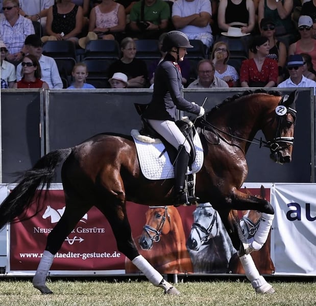 Zu verkaufen steht dieser tolle sechs jähriger Wallach von Vaderland x Diatano. Er ist bereits siegreich in Dressurpferde Prüfungen der Klasse A und L und wir haben die Lektionen der Klasse M begonnen. Es ist sehr lieb im Umgang und er macht in der täglichen Arbeit immer Spaß. Ein guter TÜV inklusive Genick Hals und Rücken ist vorhanden. Bei Fragen gerne eine persönliche Nachricht an : +49 152 23877415