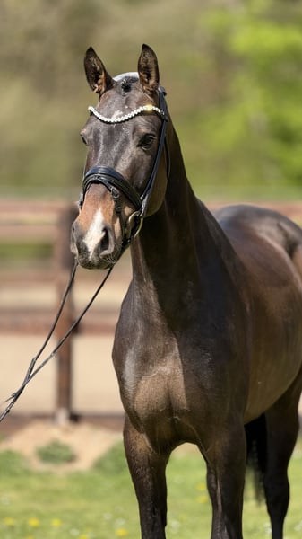 Schatz is a seven-year-old, exceptionally sweet and stunning gelding. He has been under saddle for three years and has achieved several successes at A-level competitions. In the field, he is very gentle and well-behaved. He is being sold as a leisure horse due to a medical condition. Price is secondary.