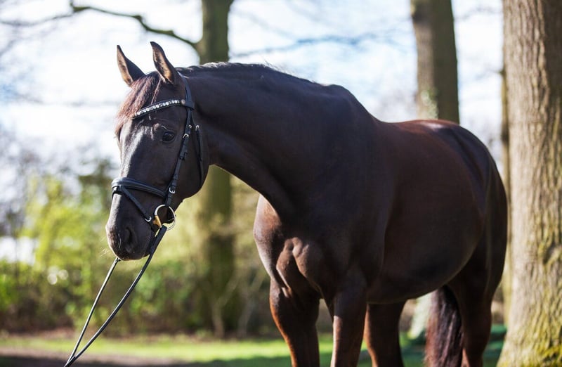 7-jarige donkerbruine ruin, zoon van Sir Heinrich x Florestano, DPF, volledig bereden