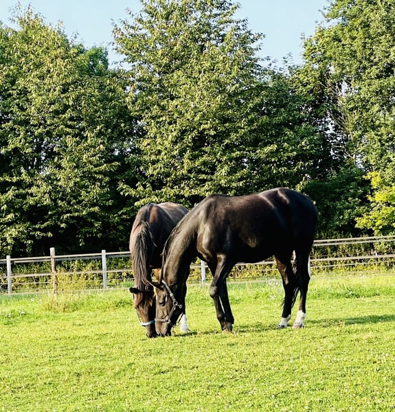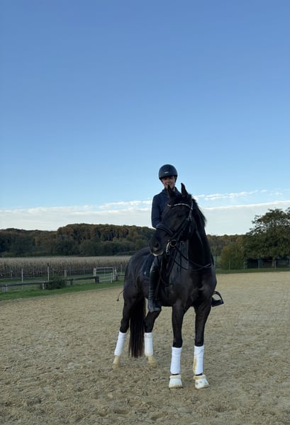 Talentierter 7jähr. Dunkelfuchs Wallach von Sir Heinrich x Florestano, mehrfach L platziert, M Dressurpferde fertig Zum Verkauf steht ein 7-jähriger Dunkelfuchs-Wallach, der mit drei sehr guten Grundgangarten, viel Elastizität und einer positiven Arbeitseinstellung überzeugt. Scallywag („der kleine Lausbub“) stammt direkt aus Züchterhand und wurde schonend und altersgerecht von einem Amateur ausgebildet. Mit seinen ausdrucksstarken Bewegungsablauf und seiner natürlichen Präsenz weiß er sich im Viereck bestens zu präsentieren – ein Showman, der stets die Blicke auf sich zieht. Entsprechend konnte er sich bereits in Dressurpferdeprüfungen der Klasse A und L gegen starke Konkurrenz und in L-Dressuren platzieren. Sein jetziger Ausbildungsstand bietet eine schöne Perspektive für die weitere Förderung, aktuell ist er Dressurpferde M fertig. Im Rahmen seiner vielseitigen Ausbildung zeigt er zudem Vermögen am Sprung, welches bislang nicht weiter gefördert wurde, und kennt Ausritte und Doppellongenarbeit. Auch hier überzeugt er durch seine Rittigkeit und positive Arbeitseinstellung. Mit seinem Stockmass von 169 cm und seinem kompakten sportlichen Format eignet sich Scally perfekt für ein sportambitionierten Reiter, der ein talentiertes Nachwuchspferd für die weitere Ausbildung sucht. Scally ist und war stets gesund, nie lahm oder ähnliches. Ein aktueller Röntgen TÜV incl. Rücken liegt vor. Hier zeigte sich ein tierärztlicher Zufallsbefund (minimaler Engstand im BWS-Bereich) der bislang zu keiner Symptomatik geführt hat. Aus diesem Grund geben wir ihn unter Wert ab. Für unseren ehrlichen und talentierten Wallach wünschen wir uns ein liebevolles Zuhause, in dem sein Potential gefördert und seine sympathische Art geschätzt wird. Bei ernsthaftem Interesse oder weiteren Fragen freue ich mich von Ihnen zu hören.