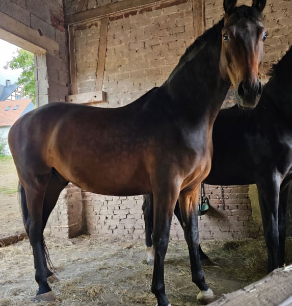 En pension chez nous en tant que jeune cheval. Nous l'avons seulement longé par manque de temps. Jusqu'à présent, il a toujours été en bonne santé. Bien élevé. Nous le vendons uniquement à de bonnes personnes. La qualité prime sur le prix. Pas de vente d'urgence !