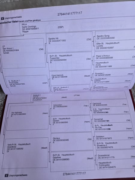 HIS HIGHNESS (HANN)HOHENSTEIN (TRAK)ST.PR. STUTE DAIREEN (HANN)CAPRIMOND (TRAK.) BHELENA XIV (TRAK)DONNERHALL (OLD)ST.PR. STUTE FLIC-FLAC (HANN)