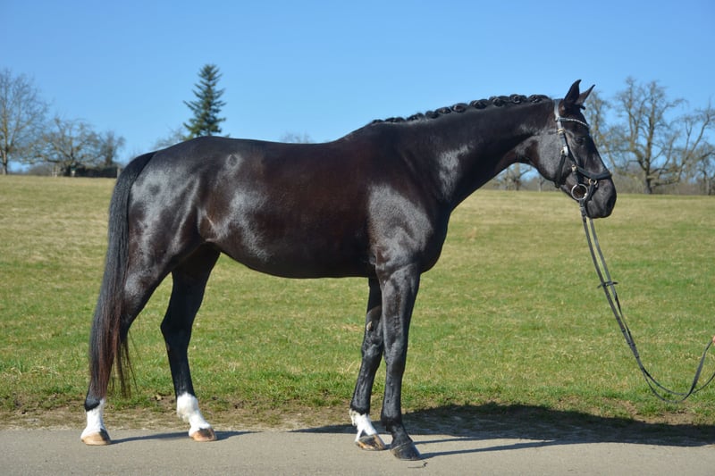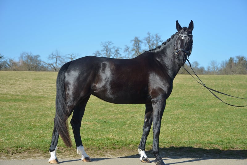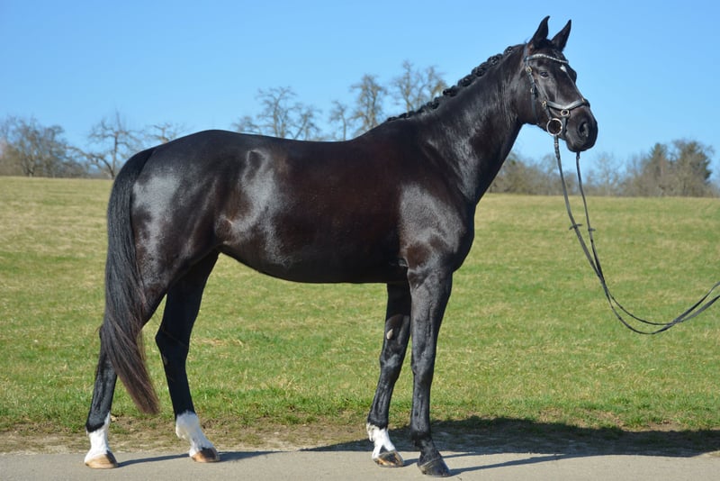 Zum Verkauf steht hier eine bildschöne Rappstute mit viel Qulität und Eleganz. Sie ist eine Enkelin von Totilas und Donnerschlag und verfügt über beste Anlagen für die höheren Klassen der Dressur. Sie punktet durch 3 sehr gute Grundgangarten und ein hohes Maß an Leistungsbereitschaft und Sensibilität. Ich habe sie 5 jähr. vom Züchter gekauft und angeritten. Seitdem hat sie eine korrekte und vielseitige Ausbildung genossen. Sie ist longiert, kennt Stangen, Cavalettis und kleinere Sprünge. Sie läuft jetzt auf L-Niveau und wird täglich besser. Auf Grund ihrer Sensibilität und Charakterstärke, sucht sie eine erfahrene, geduldige und feine Reiterin, die ihre Qualität zu schätzen und zu fördern weiß. Ein AKU liegt noch nicht vor.