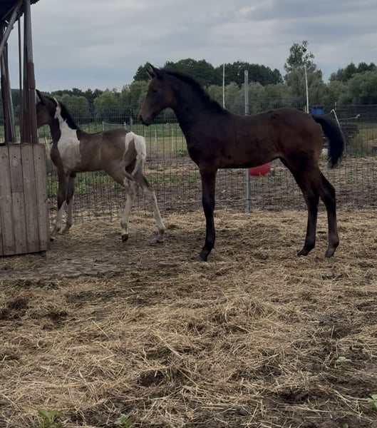 That One Night WD Z promises to be a large horse (over 170 cm). He is a very brave foal, clinging to people – although he can test boundaries. He is raised in a herd with a companion his own age, lives in a free-range system with access to a stable where he enjoys sleeping, and has no problem being locked up if another horse is nearby. He is very well-built, strong, and has beautiful movement. He is regularly trimmed, vaccinated, raised on excellent feed and supplements, and has constant access to hay and grassy pastures during the season. He is a very well-cared-for foal. Origin: His sire is the stallion Toémme de Regor Z., a son of the legendary Chacco-Blue and the highly regarded mare Centa de Muze. Toèmme has excellent breeding and enormous potential – he is a young stallion who is already showing off his sporting skills – and in great style. Last year, he won the 6-year-old class in Brussels and this year, the 7-year-old class in Münster. That One Night's dam, Drama Queen (ex-Koliadka), is a young mare who hasn't yet started riding. She is a very strong mare with a strong character, fearless, and has passed this character on to her foal. Her pedigree is also the icing on the cake – her sire, Caramo Lansing (Koramo), is a stallion with results at the 160cm Grand Prix level. Drama's dam is the daughter of Rallie des Etoiles San Gabriel, who also competed at the 160cm Grand Prix level with good results. The last photos show his parents. That One Night is ready for a new home. Only in the best homes, preferably those who will fully utilize the potential of this excellent horse.