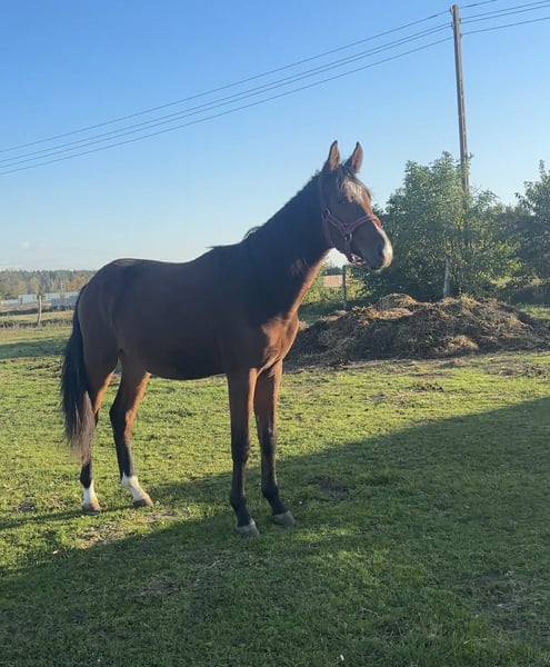 For sale is an exceptional young stallion with an excellent pedigree and great potential for high-level sport. Breed: Zangersheide (Z) Date of Birth: May 2024 (currently 1 year and 8 months old) Color: Bay with some markings Expected Height: 16.1 – 16.2 hh Sire: Odyssee Van De Hoef HS (by OD Highlight Blue / Cornet Obolensky) – son of the legendary Cornet, carrying the genes of top-class show jumpers. Dam: Henna (by Hanin / Grand Master) – a mare with a strong build and very good movement. This young stallion features a modern conformation and outstanding movement. He moves with great grace, lightness, and natural balance. He has a very friendly personality, is eager to work with humans, and learns quickly. An ideal candidate for an ambitious sport horse after gelding. The horse is very well-mannered for his age: - Handles all legs without issue. - Moves correctly on the lead. - Calm and patient during grooming and farrier visits. IMPORTANT! The young stallion is bilaterally inguinal. Surgical castration at a veterinary clinic is necessary, which will incur additional costs for the buyer. He is not suitable for breeding. In his box, he exhibits a pica habit. On pasture or in an open system, he completely ceases this behavior. All faults considered, the price is 25,000 PLN negotiable.