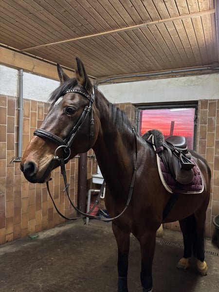 Ich verkaufe wenn alles passt, eine 2017 geborene Stute von Vegas VDL x Laurencio. Die Stute ist ein Zangersheide Reitpferd. 5- bis 7-jährig ist sie einige Turniere gelaufen und war Springpferde A, E und A** Springen platziert. Video im Parcours und beim reiten sind vorhanden und kann bei Interesse gerne versendet werden. Aktuell wird sie nach einer ausgeheilten Verletzung gerade wieder leicht antrainiert. Ist super unerschrocken, kinderlieb, geht ausreiten allein und in der Gruppe. Sie wäre ein toller Freizeitpartner. Man kann sie wieder anschieben oder als unverbrauchte Zuchtstute einsetzen. Sie wurde regelmäßig geimpft, entwurmt und dem Hufschmied vorgestellt. Ein Kennenlernen ist nach Absprache gerne jederzeit möglich. Platz vor Preis :)