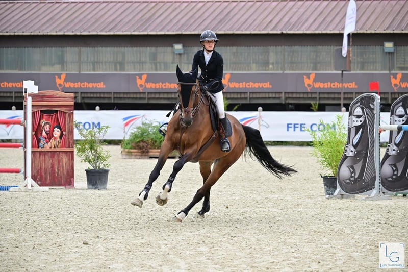 Top Zangersheide mare Course Pours’huit Z, 10 years old, 16.8 hh 🧬 Con Air x Pagena Palmarès: • Qualified for the 2024 French Amateur Elite Championships and participated in 2025, finishing 6th in the hunt • 39 top placements (including preliminaries) since the start of her career • Winner of the 4-year-old Classic Cycle Final at Fontainebleau • CSI* 130: 3rd/37 • CSI* 130: 10th/54 • Amateur Elite: approximately ten placings in the past year with an amateur rider Beautiful appearance, harmonious and muscular mare • Very easy to handle: grooming, transport, shoeing, lovely on foot • Ridden in a simple bit • Fully up to date on all vaccinations and health checks • Lives in a box and paddock during the day, can be kept outside • Excellent temperament both under saddle and on the ground: energetic, strong, respectful, with heart, very good jumping ability • Well-trained in dressage: head on the wall, shoulder-in, changes of leg, flying changes, etc. • Rides alone or in company outdoors Experienced mare currently competing at 125 cm in show jumping with an amateur rider • Consistently jumps 130/135 cm at home with an amateur rider • Potential for 135/140 cm minimum with good chemistry • Radio check: OK • More photos and videos available upon request
