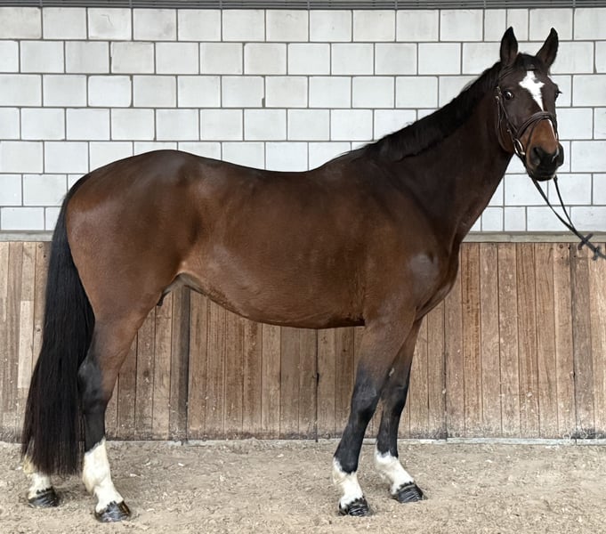 Sweet mare. Zangersheide papers. The foal is still on her, not weaned yet. She has been ridden only a few times and behaves well. She is not easily spooked and has a relaxed temperament. Due to lack of time and the need to resume training, she is offered at a favorable price. The horse is located in Oud Gastel, Netherlands. Healthy and sound. Nice and clean legs.