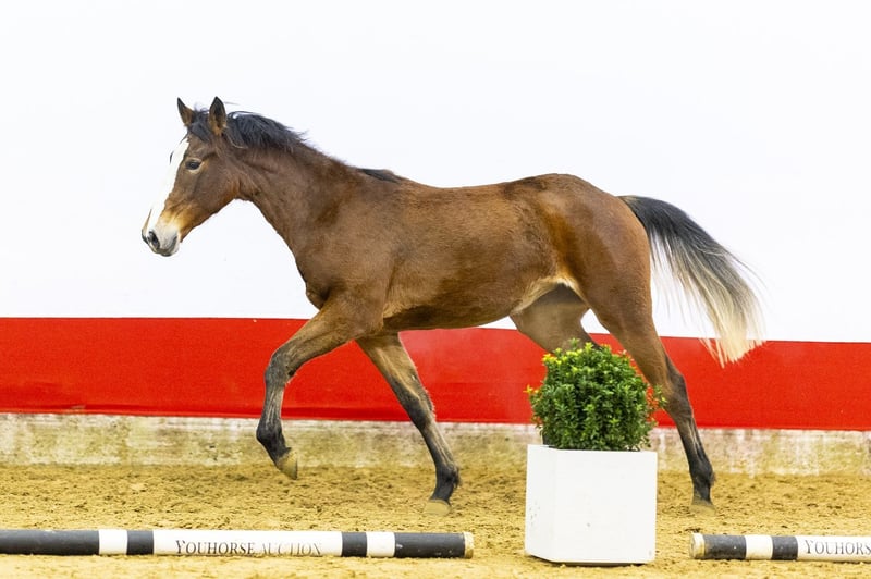 https://youhorse.auction/en/auction/Pippa-vd-Paepehoeve-Z-PLOT-BLUE-x-NABAB-DE-REVE Pippa vd Paepehoeve Z is a very interesting young horse from a strong breeding background. She jumps with a good technique and stands out for her powerful and active use of the hindleg. She is light-footed, shows scope and jumps with balance and quality. She has a very nice canter and shows natural rhythm. At just one and a half years old, this is clearly a horse for the future, with all the ingredients to develop further. Sire Sire Plot Blue competed at 1.60m Grand Prix level and is one of the leading sires worldwide. As a son of Mr. Blue, he produced top-level performers such as Le Blue Diamond van ’t Ruytershof (1.70m), Messi van ’t Ruytershof (1.70m) and Ginger-Blue (1.60m). Plot Blue is known for passing on blood, scope and quick reflexes. Dam and damline Dam Nikita de la Vie (Nabab de Rêve) competed at 1.20m level and descends from an exceptional damline. Granddam Tuut Tuut (Heartbreaker) is preferent and prestatie and produced numerous international sport horses and approved stallions, including: Consul DL Vie Z (Clinton) – approved stallion, 1.55m Antigone Quality (Berlin) – 1.60m Wimphof’s Hinde (Berlin) – 1.60m Condios 13 (Contact van de Heffinck) – 1.50m It Factor (Ralando Z) – 1.45m Great-granddam Kharmeta (Ramiro Z) produced several sport horses, including: Sharmeta (Calvados) – 1.50m Rharmeta (Calvados) – 1.40m Grim (Manhattan) – 1.30m The fourth dam Charmeta (Exkurs xx) forms the foundation of a very broad and proven international sport family with results up to 1.60m level.