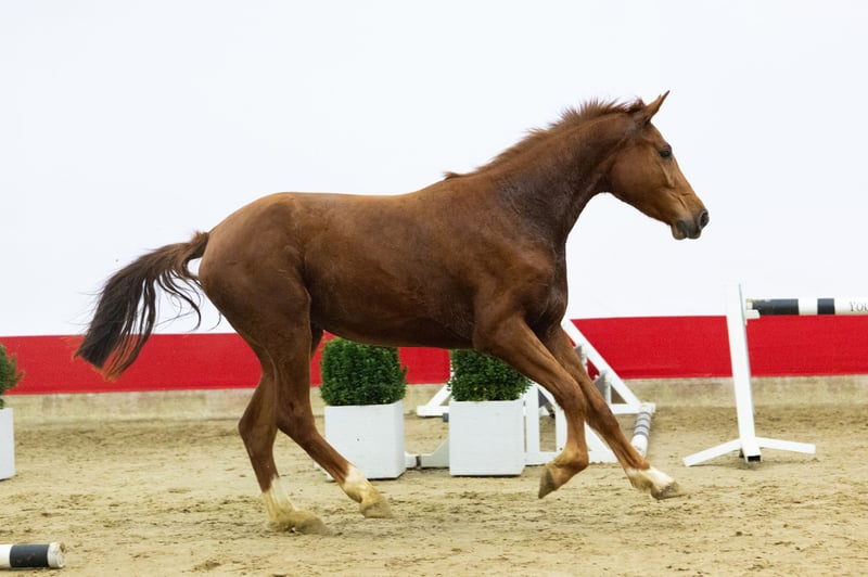 The three-year-old mare Djarling VP immediately stands out with her fine canter and balance. We believe she is suitable for multiple disciplines. Sire Djarko RP Z is a six-year-old son of Demerald R Z (1.50m level with Jeroen Appelen) out of a half-sister to two 1.60m Grand Prix horses and one at 1.55m level. Dam Darling RP also descends from Demerald R Z. Granddam Joke van ’t Gestelhof is a daughter of the Small Tour dressage stallion Saros van ’t Gestelhof x Furioso Z. She is a half-sister of the approved stallions Turbo van ’t Gestelhof (1.60m Grand Prix) and Warkant van ’t Gestelhof (Grand Prix dressage).