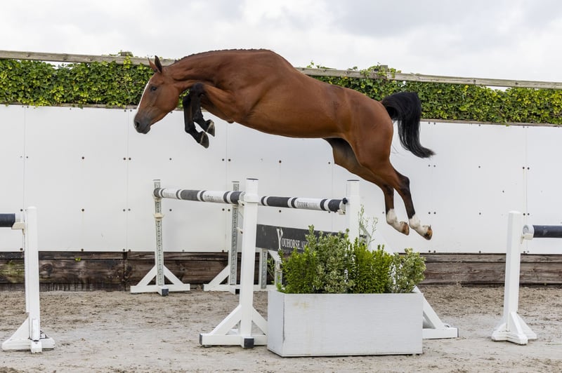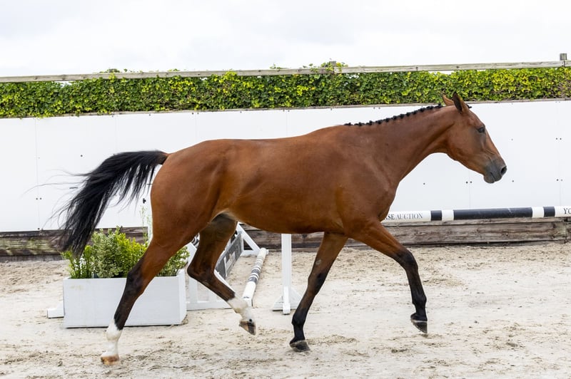 This mare will attract many fans, because every jump is a good one. The three-year-old Kassandra SDW Z, from the line of McLain Ward’s Sapphire, is under saddle, jumps with a powerfull take-off and shows scope and a good technique. Also check her big stride. Sire Kasanova de la Pomme stole the show in the arena and is classified at 1.70m Grand Prix with Koen Vereecke. His dam Everlychin de la Pomme jumped 1.60m, his granddam 1.50m, and his great-granddam 1.60m GP. His eleven-year-old son H5 Origi Horta is 1.60m Grand Prix and three other offspring have broken through at 1.55m level. Dam Nefertete SDW Z (Nixon van ’t Meulenhof) is seven years old and competed international at 1.25m level last year. Granddam Alina van ’t Merelsnest Z (Arko III x Lord Z) is a full sister of Antina van ’t Merelsnest (1.55m GP) and a half-sister of Martialis (1.60m GP) and Paddington du Royaume (1.50m). The fourth dam is Wendelina van ’t Merelsnest (by Darco), full sister of Olympic gold medalist Sapphire with McLain Ward and Qarco van ’t Merelsnest (1.60m GP), and dam of Glasgow van ’t Merelsnest (1.65m GP) and four 1.50m level horses.
