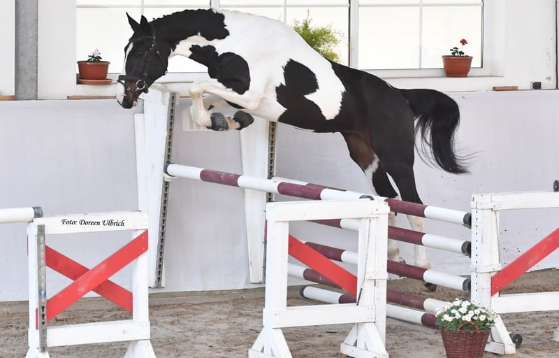 Une garantie de couleur à cent pour cent pour tous les amis des pie et les éleveurs. Nous vendons dans des mains appréciatives notre jument pie de race pure âgée de 4 ans, avec de bons mouvements et une excellente lignée. Avec ses 156 cm, elle est malheureusement un peu petite pour nos objectifs sportifs, c'est pourquoi elle a seulement été longée et saillie jusqu'à présent. Elle est gentille et facile à gérer, tant seule qu'en groupe. Actuellement, elle est gestante du premier lot du étalon pie de race pure Outlander Z / (Obi-Wan). Sweet Caroline Z a été saillie naturellement lors de son premier essai. De cette union naîtra un poulain de race pure avec de bons papiers recherchés pour la poursuite de l'élevage. Le prix augmentera en raison des coûts de soins et de nourriture à mesure que la gestation avance. Avec une formation supplémentaire, elle conviendrait également comme une excellente monture pour dames, juniors ou cavaliers en reconversion.