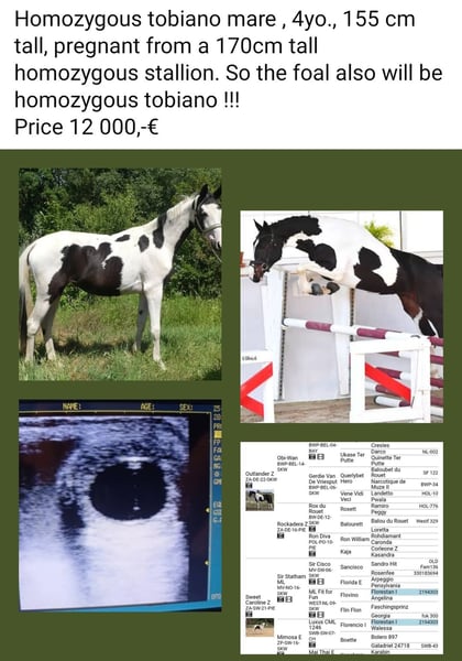 Sto procent gwarancji koloru dla wszystkich miłośników i hodowców srokatek. Sprzedajemy w dobre ręce naszą 4-letnią, czystorasową klacz srokata z dobrymi ruchami i wspaniałym pochodzeniem. Z 156 cm niestety jest jeszcze trochę za mała na nasze sportowe cele, dlatego jak dotąd była tylko lonżowana i pokryta. Grzeczna i łatwa w utrzymaniu oraz w stadzie. Aktualnie jest w ciąży z pierwszym rocznikiem czystorasowego ogiera srokatego Outlander Z / (Obi-Wan). Sweet Caroline Z przy pierwszym naturalnym kryciu od razu przyjęła. Z tej pary powstanie czystorasłe źrebię z dobrym i poszukiwanym papierem do dalszej hodowli. Cena wzrasta w związku z kosztami pielęgnacji i żywienia przy zaawansowanej ciąży. Przy dalszym szkoleniu z pewnością nadaje się również na wspaniałego konia dla pań, juniorów lub dla osób przesiadających się.