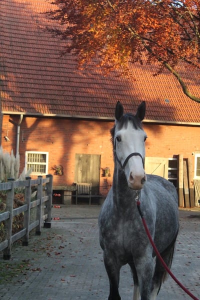 Zum Verkauf steht die 5-jährige Stute Mon Petit, aktuell ca. 164 cm groß. Die Stute ist bei uns geboren und aufgewachsen und wurde stets liebevoll und sorgfältig aufgezogen. Sie zeigt sich im täglichen Umgang sehr lieb, brav und unkompliziert. Im Jahr 2025 brachte sie ein gesundes Fohlen von Drummer TN zur Welt. Aktuell ist sie tragend von Tatto TN oder erneut von Drummer TN. Mon Petit überzeugt besonders durch ihre sehr hübsche Aufmachung, viel Ausstrahlung und ein sportliches Modell. Freispringen • sehr guter, vorsichtiger Sprung • zeigt Vermögen und Übersicht • gute Technik und viel Potenzial für den Springsport Im Umgang präsentiert sie sich freundlich, menschenbezogen und angenehm zu handeln. Durch ihre Qualität am Sprung sowie ihre interessante Anpaarung bietet sie sowohl sportlich als auch züchterisch eine spannende Perspektive. Mon Petit ist eine vielversprechende junge Stute, die sich ideal für Züchter oder Reiter eignet, die ein qualitätsvolles Pferd mit Perspektive suchen. Bei Interesse freuen wir uns über eine Nachricht und geben gerne weitere Informationen zur Stute. +49 1573 4707732