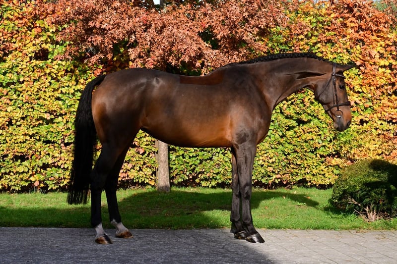 This elegantly built bay mare is a daughter of Apardi, the successful son of Corland, both of whom have proven their ability at the highest 1.60m level. Her strong sporting genetics are further reinforced by the presence of Hunter’s Scendro in her dam line. He is the sire of Qui da D’Emma, a mare confidently competing up to 1.45m. This combination of proven top-level stallions makes her pedigree particularly impressive and highly promising for the future. Avant’E H Z demonstrates excellent quality under saddle. She offers three correct, spacious, and elastic basic gaits, with her naturally balanced and uphill canter being a true highlight. She moves with suppleness, displays an effortless posture, and performs flying changes with ease, control, and clarity. Over fences, she shows refined technique: she is quick off the ground, uses her body well, and exhibits clear awareness. Her attitude is cooperative and honest, making her a pleasure to ride and train daily. She consistently provides her rider with a secure and confident feeling. For anyone seeking a modern, athletic mare with both sport talent and valuable bloodlines to develop toward higher levels together. In the case of direct export to non-EU countries, VAT is no longer applicable (21% becomes 0%). If the export is delayed (but happens as soon as possible), the VAT will be refunded after we receive the official export document (prepared by customs).