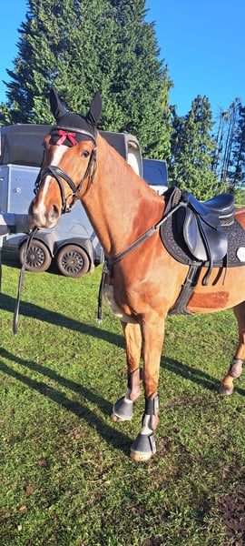 7-year-old Zangersheide mare sired by Comilfo Plus Z out of a Harley VDL mare. The mare has multiple placings in 1.00m show jumping classes and has completed 1.30m courses without faults. She is extremely cautious and has tremendous scope at the jump! In handling, farrier, trailer loading, etc., she is absolutely well-behaved and uncomplicated. This mare is NOT suitable for beginners or inexperienced riders! In the arena, she always gives her best! At home or on the lunging area, she occasionally tests the rider and can become quite cheeky. For a confident rider who can assert themselves, she is a fantastic horse that always wants to be on the other side of the jump and rarely makes mistakes at the obstacle. Thanks to her excellent pedigree, she is also interesting for breeding. Exchange possible for a 3- or 4-year-old with top bloodlines.