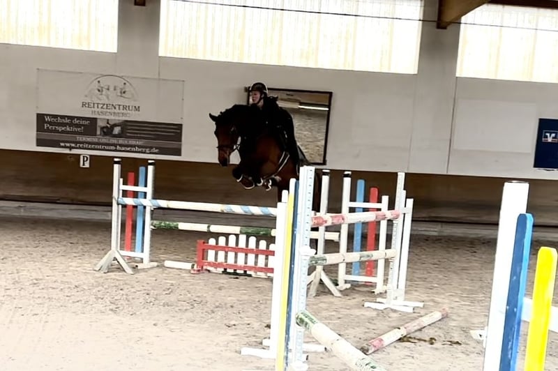 Wysokiej jakości wiosenne potomstwo, z wyjątkiem genetyki, ze znanej linii holsztyńskiej, 104 a! Bardzo jeżdżący i gotowy do działania z wystarczającymi umiejętnościami i ostrożnością na skoku!