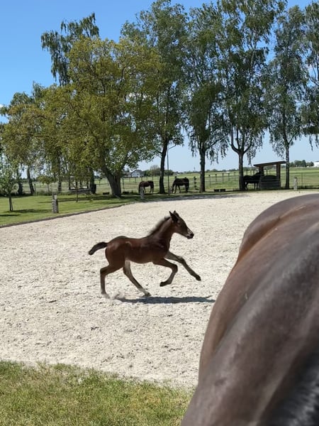 Zum Verkauf steht ein aufgewecktes und elanvolles Stutfohlen von Candy de Nantuel aus einer Con Air - Casall Stute. https://horsetelex.de/horses/pedigree/1865794/cinq-bel-nuances-z
