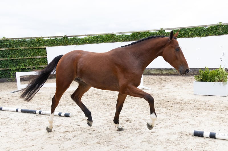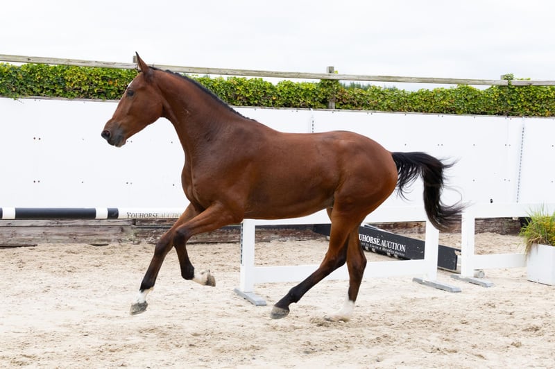 The three-year-old Oakwood van de Hazenhoek just came out of the paddock with other young horses. Green as grass, but a stunningly beautiful horse with a good canter and plenty of scope. He does everything very easily. His seven-year-old half-sister Sisley van de Hazenhoek already competes internationally in 1.35m classes with Robin Vermeir (BEL). Father Opium JW van de Moerhoeve is very well-bred as a son of Kanann x Nabab de Rêve and as a grandson of the 1.60m Grand Prix mare VDL Groep Eureka. He is even a half-brother to the 1.70m Grand Prix stallion Mumbai. The eleven-year-old Opium JW jumps 1.50m internationally himself under Lillie Keenan (USA). Mother Oilily van de Hazenhoek has two parents competing at 1.60m Grand Prix level: Echo van ’t Spieveld and Lancome (Eldorado van de Zeshoek x Diamant de Semilly), ridden by Colleen Acosta (USA). Closely related are the 1.50m jumpers Kyra van de Doornhaag and Nabisco van de Doornhaag.