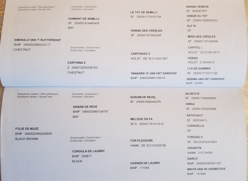 EMERALD VAN 'T RUYTERSHOF x NABAB DE REVE x FOR PLEASURE x DARCO. Quality and healthy horse with top top genetics. Good x-rays and vet check. Mother jumped 1.40m.