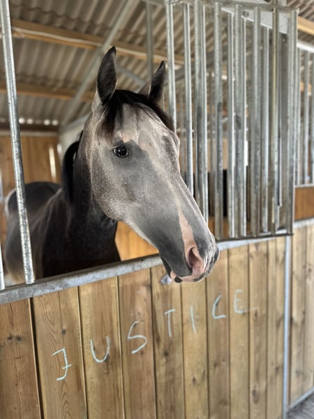 Springtalent sucht neuen Besitzer! Zum Verkauf steht ein wunderschöner Schimmel-Wallach, geboren im Jahr 2022. Mit einem aktuellen Stockmaß von 160 cm ist er perfekt für ambitionierte NachwuchsreiterInnen oder erfahrene ReiterInnen die ein vielversprechendes zukünftiges Springpferd suchen. Der Wallach stammt aus einer renommierten Zuchtlinie und zeigt bereits jetzt viel Talent im Springen. Sein ruhiges freundliches Wesen und seine Lernbereitschaft machen ihn zu einem idealen Partner für den Aufbau im Springsport. Aktuell ist der Wallach anlongiert und wird schonend und mit Ruhe weiter ausgebildet. Bei Interesse oder weiteren Fragen stehe ich gerne zur Verfügung. Vereinbaren Sie jederzeit gerne einen Termin zur Besichtigung und lernen Sie dieses vielversprechende Pferd persönlich kennen!
