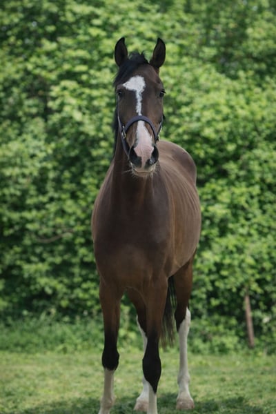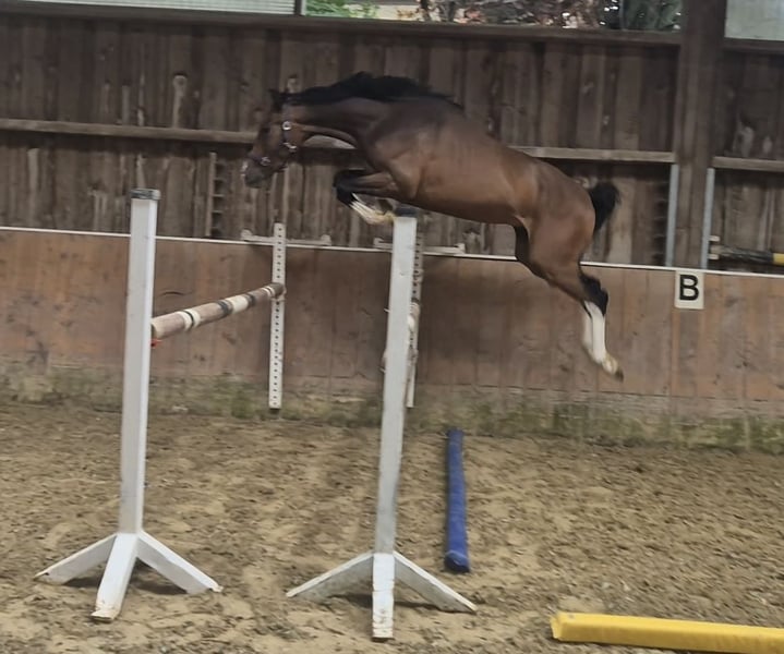 Sehr schicker und sehr vermögender 4-jähriger Wallach v. Hunters Scendro x Carthago Z x Quick Star. Aus derselben Mutter gibt es bereits zwei bis 1.60m international erfolgreiche Springpferde. Er ist sehr brav im Umgang und beim Reiten und macht einen super Sprung. Stockmaß momentan ca. 1.62/ 1.63m, aber noch voll im Wachstum. Guter TÜV