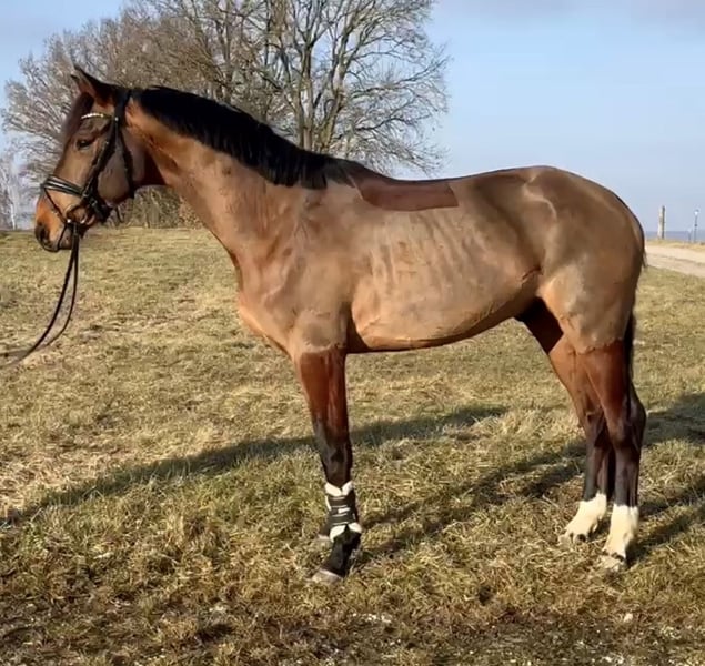 Franky is a 4-year-old gelding, shown in the video riding under saddle for approximately three weeks. He is exceptionally well-behaved, eager to learn, and demonstrates a natural rhythm and impulsion. He is easy to handle, clear-minded, and a pleasure to ride – a horse that truly makes riding enjoyable. Character 10/10. X-rays available, including the back, with no findings.