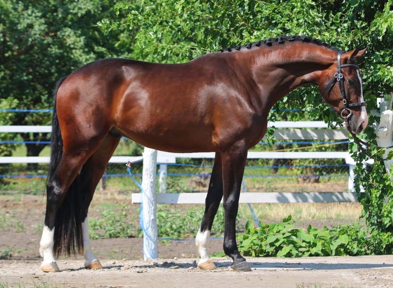 Ipsthar – 4-letni wysokiej klasy ogier skokowy, brązowy, 173 cm Ojciec: Ipsthar (Concorde / Quidam de Revel / Voltaire) Matka: Don Perignon Z (Darco / Chin Chin / Andiamo Z) Wyrazisty młody ogier o wyjątkowej technice skoku, naturalnej jakości ruchu i dużym zapału do pracy. W fazie podstawowego szkolenia, wykazuje szybkie przyswajanie wiedzy i znakomite predyspozycje do skoków. Idealny dla ambitnych jeźdźców, na zawody i do międzynarodowej kariery. Spokojny temperament, łatwy w obsłudze. Dostępne zdjęcia RTG. Transport na cały świat bez problemu możliwy.