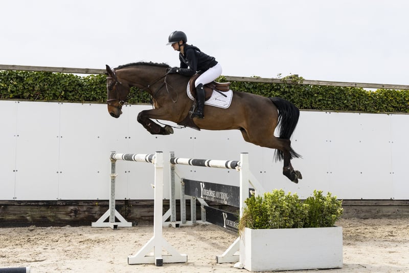 Attractive type. Already comfortable to ride and has jumped an 80 cm training course. Has been ridden by an amateur for a year and has a good character. Nice horse, easy to ride. Get on and go, shows scope with ease. Sire Cote d’Or Z – 1.55m level. Son of Carambole (1.60m) x Diamant de Semilly (1.60m). Dam Qulana de Leau Z – 1.45m level. Damline Granddam Aqaba de Leau – 1.50m. From this line come: Chaplin de Leau – 1.40m Qulana de Leau Z – 1.45m Qupido de Leau Z – 1.40m (approved stallion AES) Nafi de Leau Z – 1.35m Coco Chanel van de Zuuthoeve Z – 1.30m Further in the line: Oruth G – 1.60m.