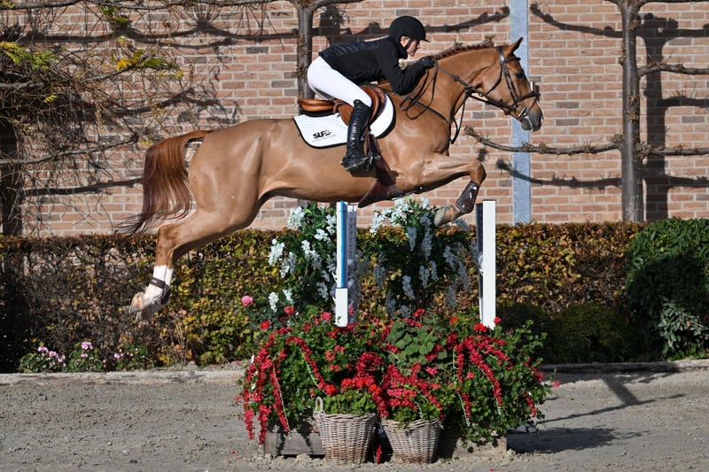 This striking five-year-old chestnut gelding by Don VHP Z is truly a horse that stands out. He has a correct, modern conformation paired with an elegant appearance that immediately catches the eye. On the dam’s side, his pedigree shows strong jumping bloodlines, featuring Humberto ASK, Numero Uno, Voltaire and Jasper, making him highly interesting for both sport and breeding. In movement, Don Amour demonstrates a great deal of quality: his gaits are spacious, powerful, and very correct. In the canter, his natural elasticity, balance, and suppleness are especially noticeable. He transitions easily and performs clean, effortless changes. Combined with his blood, rideability, and willing character, he is truly a pleasure to work with. He also proves his talent over the jumps. He thinks along with the rider, shows good awareness, and consistently gives a very positive feeling at the fences. His attitude, technique, and eagerness to perform make him a horse with clear potential for the future. For anyone looking to invest in a modern, high-quality sport horse with presence and talent In the case of direct export to non-EU countries, VAT is no longer applicable (21% becomes 0%). If the export is delayed (but happens as soon as possible), the VAT will be refunded after we have received the official export document (which is drawn up by customs).