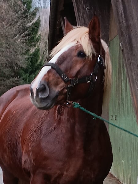 Sympathische Kaltblutstute zu verkaufen! Sie ist das absolute Verlasspferd , immer ruhig und ausgeglichen und der Liebling aller Kinder . Jeder wird sicher aus dem Gelände wieder nach Hause gebracht, egal ob alleine oder in der Gruppe . Autos , Trecker, Züge , schreiende Kinder oder bellende Hunde sind für diese Stute kein Problem. Ihr Zuhause ist das Gelände, auch für absolute Anfänger geeignet! Sie genießt jegliche Aufmerksamkeit, ist brav beim Schmied und beim Verladen . Aktuell trägt sie Vorderbeschlag. Selbstverständlich regelmäßig entwurmt und osteopathisch behandelt. Absolut verträglich , Box und Offenstall gewohnt . Auch nach einer Pause , einfach draufsetzen und losreiten,immer ausgeglichen. Aufgrund von Platzmangel dringend zu verkaufen ,gerne auch mit Zubehör gegen Aufpreis (Sattel und Trense ).