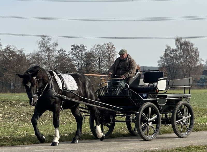 Very friendly and exceptionally gentle gelding who has already been driven in a pair harness. He has also been ridden in the terrain, is familiar with open stable management and herd keeping, and gets along wonderfully well with others.
