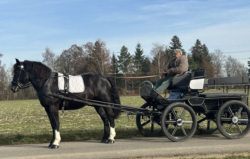 Un hongre très gentil et extrêmement amical, qui a déjà été conduit en attelage simple et double. De plus, il a été monté en extérieur, connaît le box-ouverte et la vie en troupeau, et il s'entend parfaitement avec ses congénères.