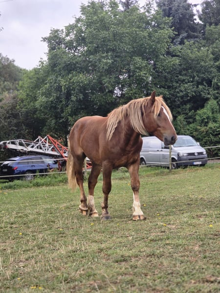 Bald dreijähriger Wallach Süddeutsches Kaltblut Geboren im April 2023, gelegt worden 8/2025. Er steht in einer 5er Herde, es sind alles Wallache. Cole ist ein sehr verschmuster, Kinderlieber gemütlicher Kerl. Er zeigt sich von seiner unerschrockenen Seite. Halfter, führen, putzen macht er super lieb mit, selbst mit Kindern. Mit leichter Sedierung ist er schon mehrfach mit uns Hänger gefahren. Ansonsten ist er roh. Bereit für das Leben als Jungpferd. Bei Fragen bitte melden 0176 67005020 Ort 56295 Lonnig Preis 2500 vb