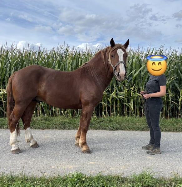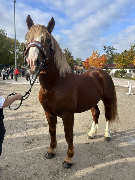Wegen Bestandsminderung suche ich für meinen Süddeutschen Kaltblut Wallach „Romeo“ ein neues Zuhause. Romeo ist 2,5 Jahre alt, und wurde im Oktober mit 1,66 cm gemessen. Er ist dem Alter entsprechend longiert, leicht gefahren und kennt den Sattel schon. Rembrandt x Sam PSSM frei Bei Interesse gerne melden.
