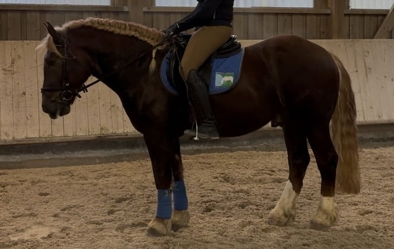 Wir verkaufen einen wunderschönen und superlieben süddeutschen Kaltblut Wallach. Er ist 4 jährig sehr anständig und brav wurde bisher hauptsächlich 1 und 2 spännig vor der Kutsche gefahren. Es macht super viel Spaß mit ihm ausreiten zu gehen. Er ist sehr freundlich lasst sich in der Halle schön reiten, geht auch super an der Longe. Er hat schön geschmeidige und weiche Gänge die sich super bequem sitzen lassen. Bei Interesse an unserem Sebi könnt ihr euch gerne bei mir melden unter Handy 0160-7247515.