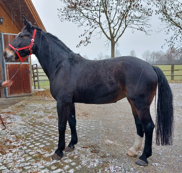 Elena, Heavy Warmblood, Moritzburger. Due to health reasons, we have to give up horse keeping, so our Elena, a beautiful bay mare, is for sale. She stands approximately 174 cm at the withers and was born in 2011. She came to us at the age of five and has been ridden and driven. We used her for double harness driving. She is also ideally suited for breeding. Up until a year ago, she was ridden on the saddle side and performed well even in traffic. She is friendly and very approachable, even to strangers. She is accustomed to box stall housing with daily turnout. Currently, she is shod on the front feet. More information gladly via WhatsApp at 017674720801.
