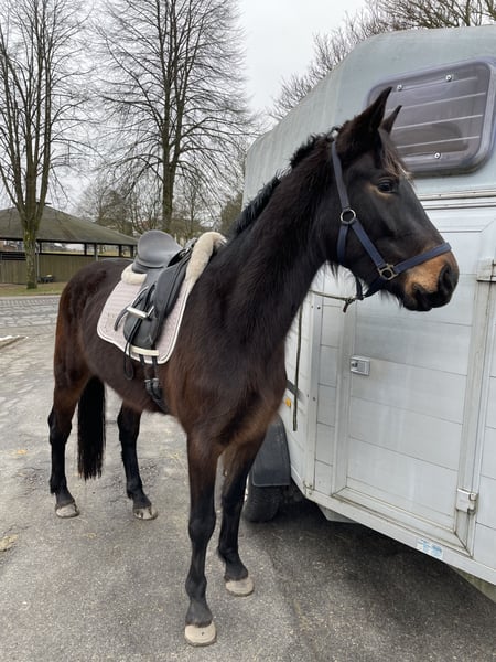 Te koop staat onze driejarige zware warmbloed merrie (Saksisch-Thüringisch zwaar warmbloed, Moritzburger). Haar vader is de prestatiehengst en Bundeschampion Loriot. Ze heeft momenteel een stokmaat van 1,65 m en is zeer typvol en sportief gebouwd. Haar uitstekende beweging en bereidheid tot presteren maken deze charmante en vriendelijke merrie bijzonder. Een ideale allrounder, geschikt voor zowel men- als dressuursport. Ze is voorzichtig in het terrein aangezadeld, kent uitritten in groep en solo, en beweegt onder het zadel in alle drie de gangen in het terrein. Tijdens het rijden toont ze zich altijd kalm en braaf. Geen enkele ongehoorzaamheid zoals bokken, steigeren, bijten of trappen. Zelfs als ze meerdere dagen niet gereden is, kan je gewoon opstappen en meteen rijden. In de bak en op het rijterrein heeft ze al haar eerste rondjes onder het zadel steeds met absolute rust en zelfverzekerdheid voltooid. In een vreemde omgeving blijft ze eveneens kalm. Ook het longeeren en grondwerk kent ze. Ze is regelmatig gevaccineerd, ontwormd en door de hoefsmid verzorgd. Haar tanden zijn recent verzorgd. Ze is schmied- en verladeerf en kent het verkeer op de weg. Sinds haar veulen leeft ze bij ons en is ze op een natuurlijke manier samen met haar leeftijdsgenoten opgegroeid in onze kudde. Ze is nog nooit ziek geweest, heeft nooit slechte ervaringen opgedaan en is zeer mensgericht. We verkopen haar alleen omdat we door een dubbele gezinsuitbreiding helaas niet meer aan haar verzorging kunnen voldoen. In de zomer heeft ze een lichte eczeem, dat met haar deken, die natuurlijk wordt meegeleverd, gemakkelijk te behandelen is. Ze heeft geen open wonden en heeft geen medicijnen nodig. Omdat ze nog geen slechte ervaringen heeft opgedaan en nog een jonge paarden is die verdere opleiding nodig heeft, willen we afzien van een proefrit.